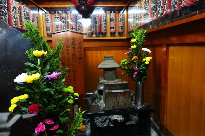 地元の信者の名前が入った提灯が、上の方にずらりと並んでいる。