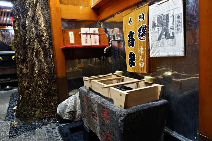 境内の手水場には古い東京新聞の記事が貼ってあり、、『ずいぶん大きくなったよ。樹木医は樹齢350年以上って言ってな。親子2代にわたり地蔵尊の管理をする小沢崇行さん(89)が話す。祖先は江戸開府とともに大阪から移り住んだ漁師で、代々この地に居を構えてきた』
