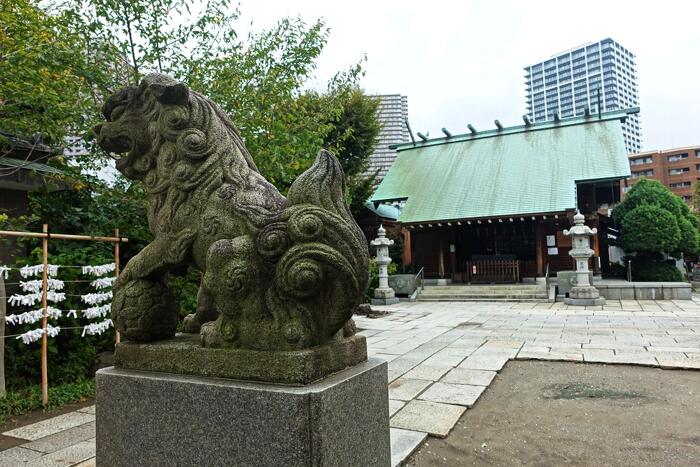 佃小橋を渡り、右に曲がると住吉神社があるが、こちらは裏側の入口になる。