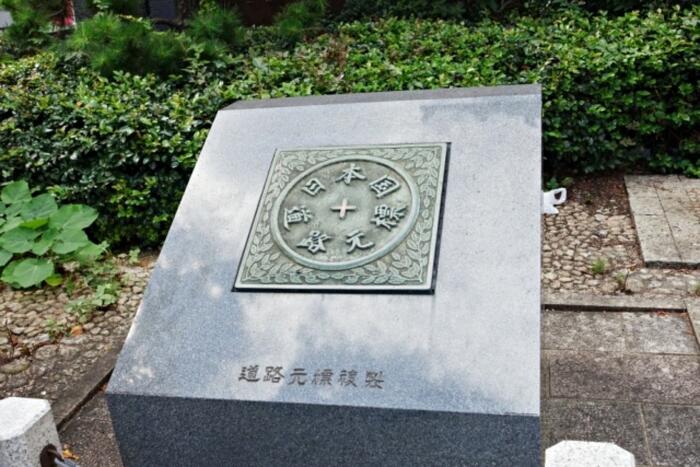 橋を渡ると「道路元標・ゼロ地点」がある。