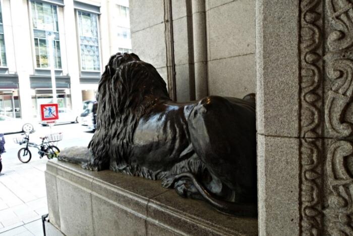 日本橋に行った時に、三越デパート入口のライオンを見た。