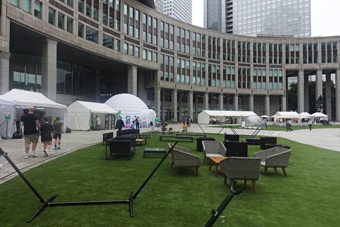 靖国神社で例大祭を見た後に家に帰るには早過ぎるので、都庁付近で行われている「FUN MORE TIME IN SHINJUKU」というイベントを見に行った。このイベントは主催者の説明では「東京都は、西新宿地区で道路・公園・街区が一体となった人中心の街づくりに取り組むと共に、スマートサービスの実装などを進めています」