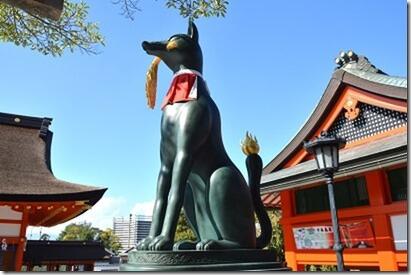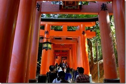 久し振りの伏見稲荷は建物が新しく塗り替えられたらしく、オレンジ色が太陽の光で眩しい。伏見稲荷は「外国人観光客の人気No1」という幟が立っていた。