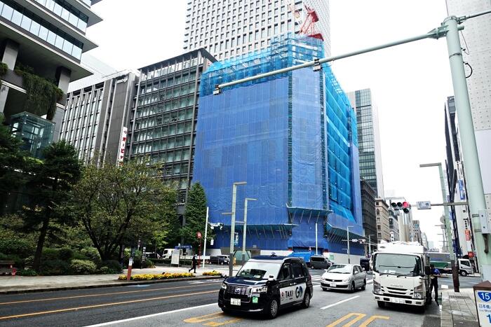 京橋近くで木造12階建てのビルが工事中と知り、早速見に行った。