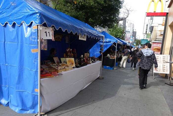 多くが個人店やアーチストの店で、自分で制作した人形やアクセサリーなどを並べている。安いものは100円からあり、商売と言うよりは「お祭り」である。