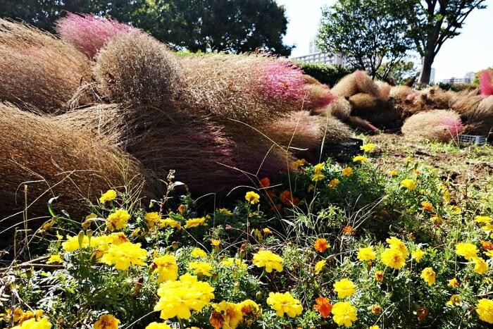 ブログネタを探していたら、江東区の11月4日のfacebookに、『大島小松川公園のコキアとマリーゴールドが見頃です』と出ていた。