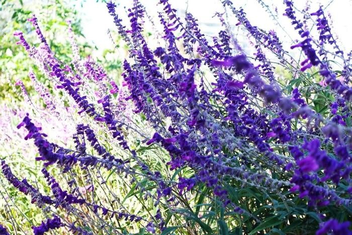 たった2日、私が行くのが遅かっただけで、コキアは刈り取られてしまっていたのである。コキアの近くにサルビアらしき紫色の花が咲いていて、とても奇麗だった。
