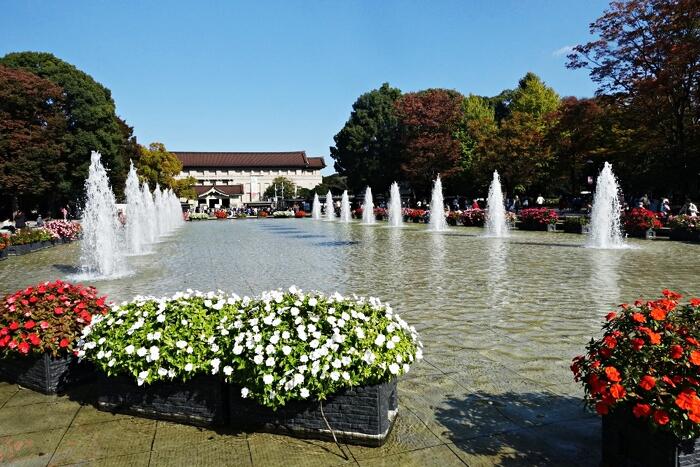 国立科学博物館を出ると目の前が広がり、大噴水の前になる。