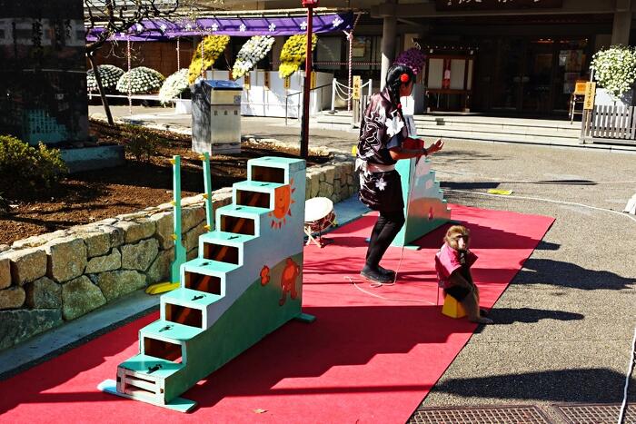 菊花展は当り前だが、動きが無い。ところが境内では、懐かしい「猿回し」をやっていた。「これは動画に最適だ」と思ったら、「動画撮影禁止」の札が出ていた。残念だった。久し振りに猿回しを見たら、「動物虐待では?」などと変なことを思った。