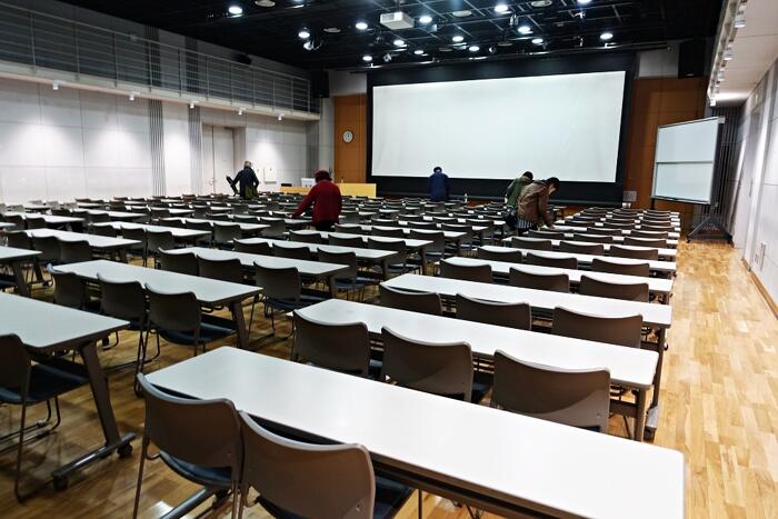 聴講生は高齢者が多く、全員で80名くらいいた。話は難しくて、中には寝ている人もいた。90分の授業だが、途中で10分の休憩がある。