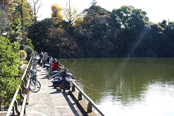 バスを「水元公園」で降りて進むと大きな池があり、釣り堀となっていて大勢の高齢者が平日の昼間から釣りを楽しんでいる。
