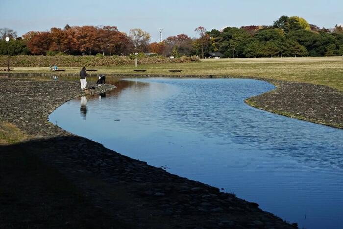 公園内は水郷のようになっているので、釣りをする人、写生をする人、写真を撮る人、キャンプをする人などが大勢いる。
