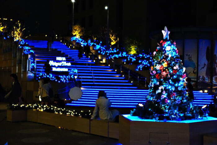 「ミッドタウン日比谷」の前のステップ広場には、7本のクリスマスツリーが飾ってあった。ネット情報によると、これは『ディズニー・アニメーション映画「モアナと伝説の海2」の世界観をイメージしたイルミネーションで、7本のクリスマスツリーを中心として、映画の世界に入り込んだような体験を味わえる』とのことだった。