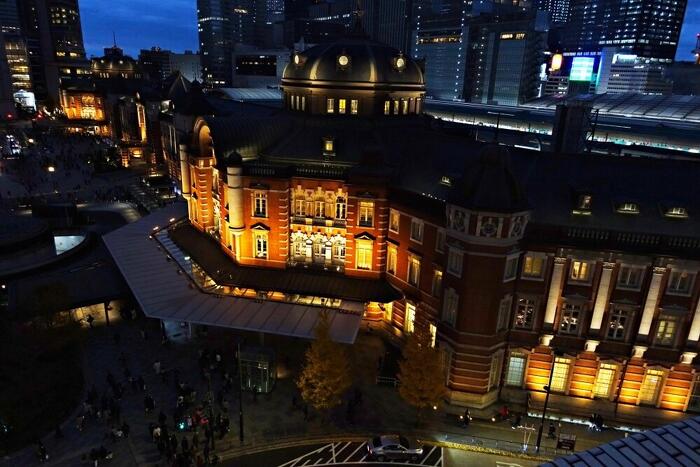 滅多に無い機会なので、最初にKITTEの6階に上がり東京駅の夜景を撮影した。
