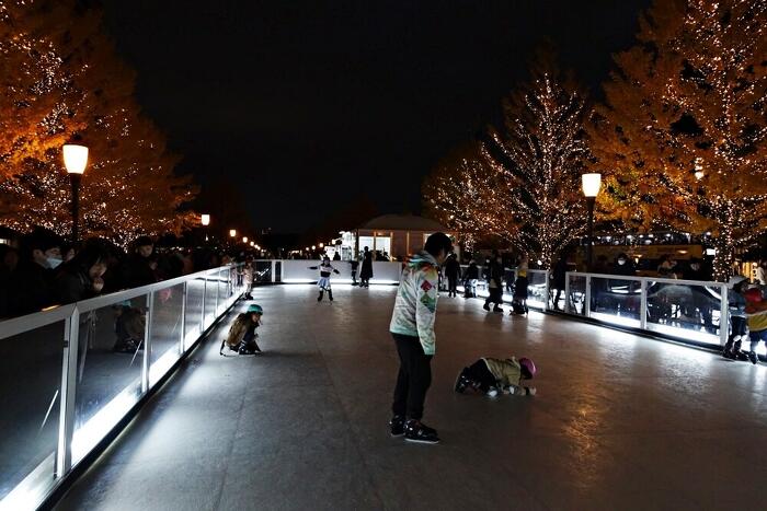 駅前から皇居に向かう道(行幸通り)の中央に、大きなアイススケート・リンクが作られていた。このリンクは氷ではなく、プラスチックで出来ている。