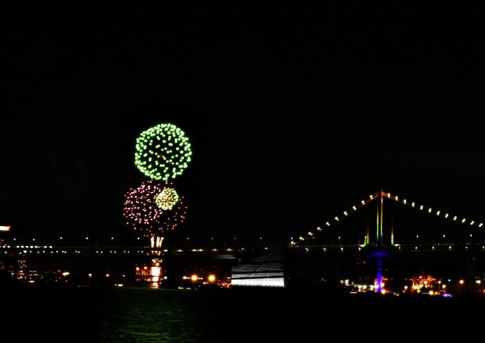 ところが私の予想と違い、花火はレインボーブリッジよりかなり左側に上がった。