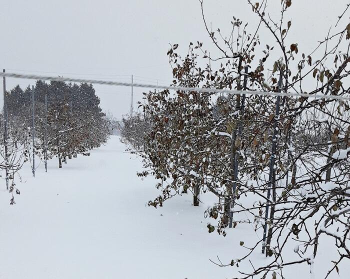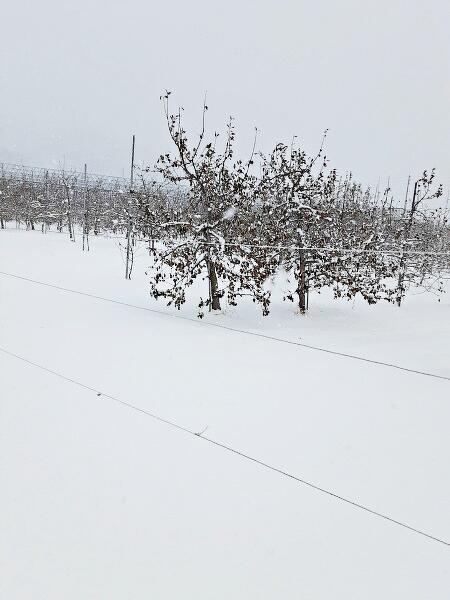 すると雪が降った翌日に、自分の家のリンゴ畑の雪景色の写真を送ってくれた。