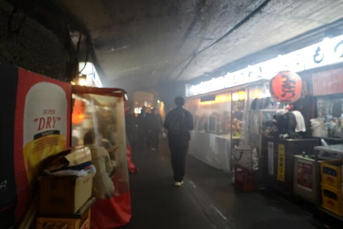 5時近くになると、焼き鳥を焼き出すようだ。その時間にそこを通ると、トンネルが煙って霞んでいる。最近は外国人観光客も、ここで日本の庶民の生活を楽しんでいる。
