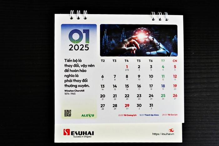この会社のカレンダーは月めくり型で、表はベトナム、裏は日本という2国用のカレンダーである。