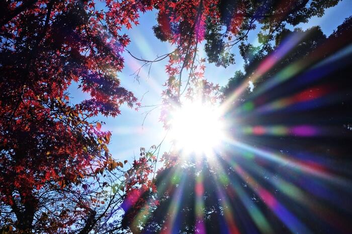 駅に向かう上野の杜にはまだモミジの紅葉が残っていて、それが逆光の中で輝いていた。