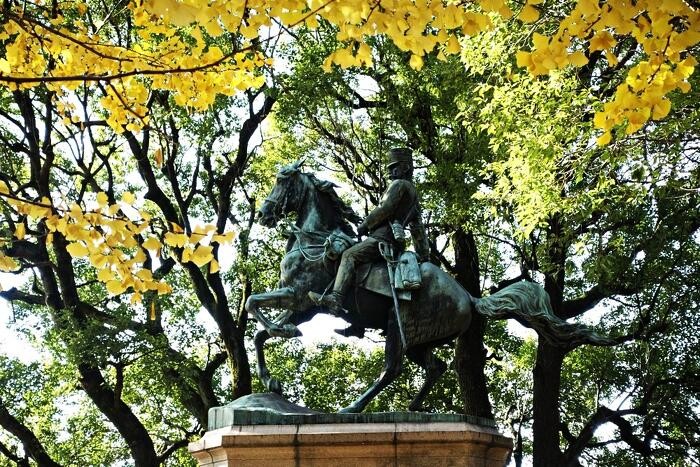 この銅像は「北白川宮能久親王」で、近衛師団長を勤めた人だそうだ。