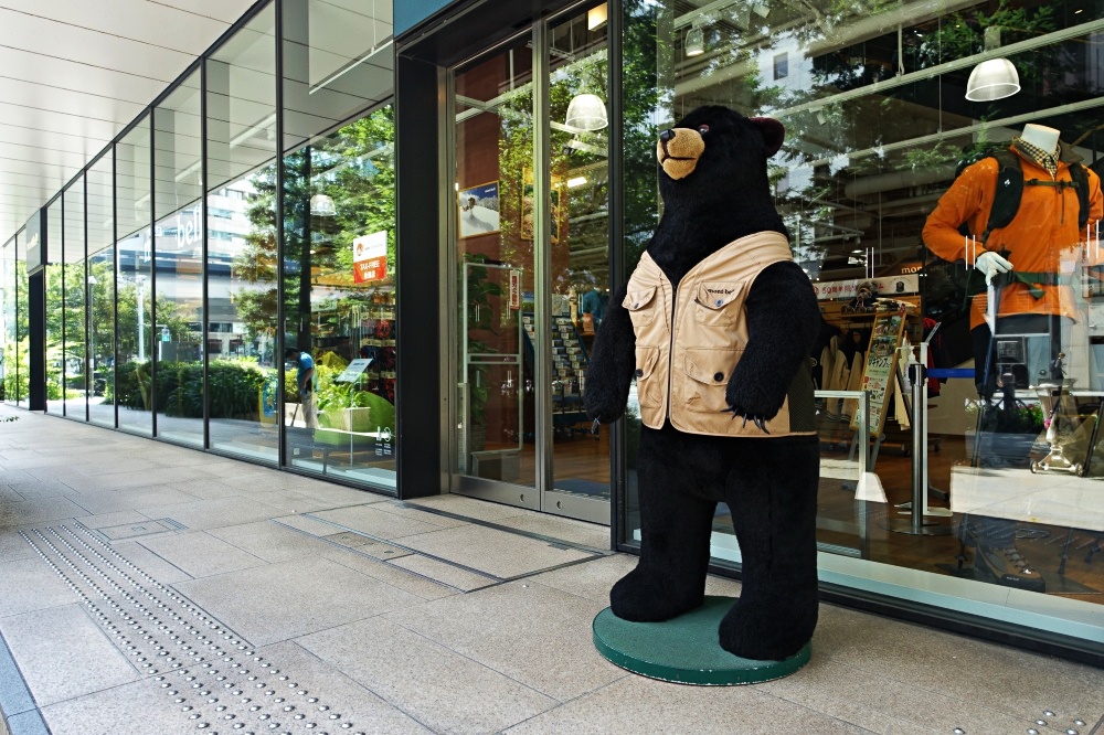 こんな話になったのは宝くじドリーム館を出て京橋に向かっている時に、「Mont-Bell」の店先に大きな熊の「ぬいぐるみ」が置いてあったからだ。