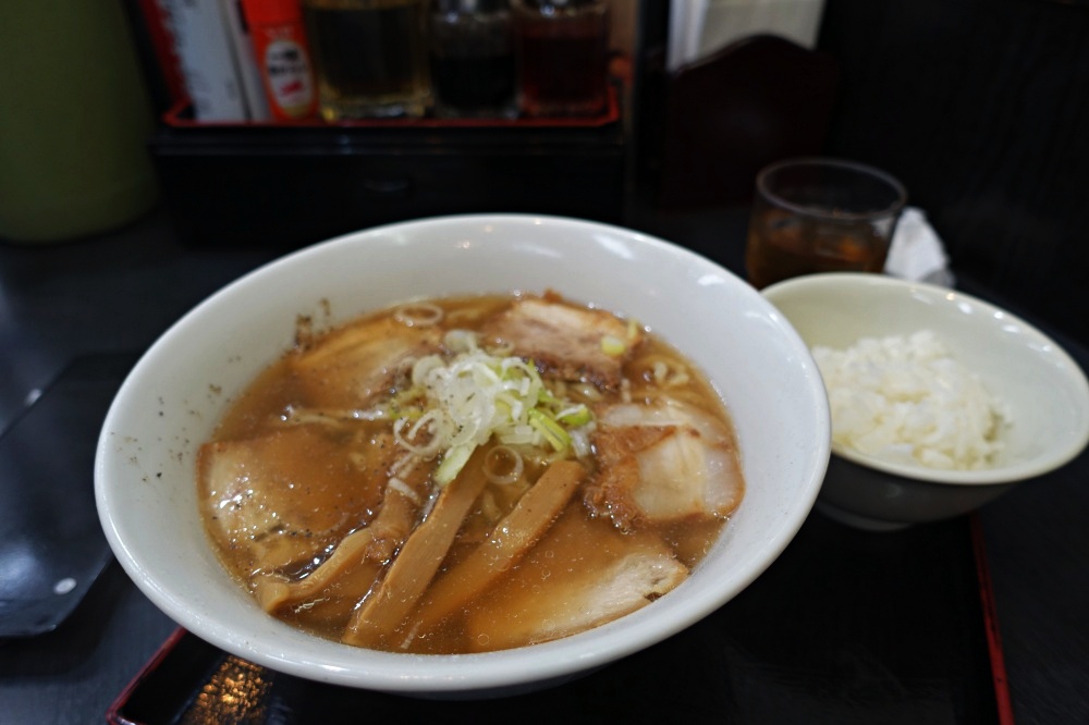 店の前では女性店員が手際よく、並んでいる内に注文を取る。だから席に着くと、間もなくラーメンは出て来る。