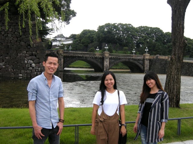 試しに10年前にベトナムからやって来た、3人の日本語教師を東京見物に案内した時の写真を使った。元画像は皇居二重橋の前で、3人が記念撮影した時のものである。