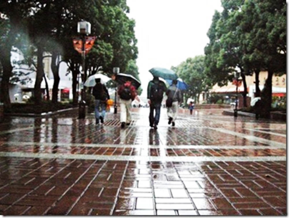 雨の中のウォーキングはかなりキツイ。しかも店への道は殆どが上り坂である。