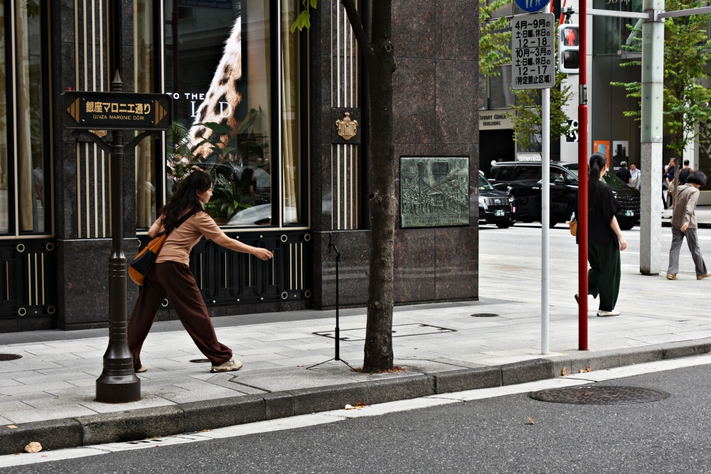 銀座の「マロニエ通り」に曲がったら、若いアジア系の女性が自撮り写真をやっていた。