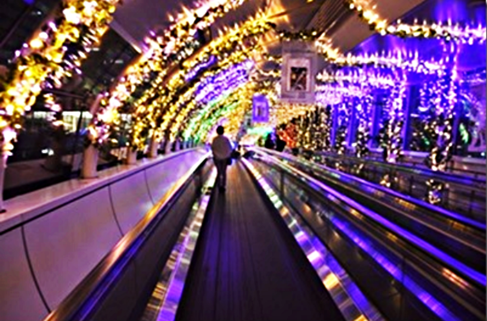 朝潮運河に架かっている動く歩道が、イベントに併せてライトアップされている。