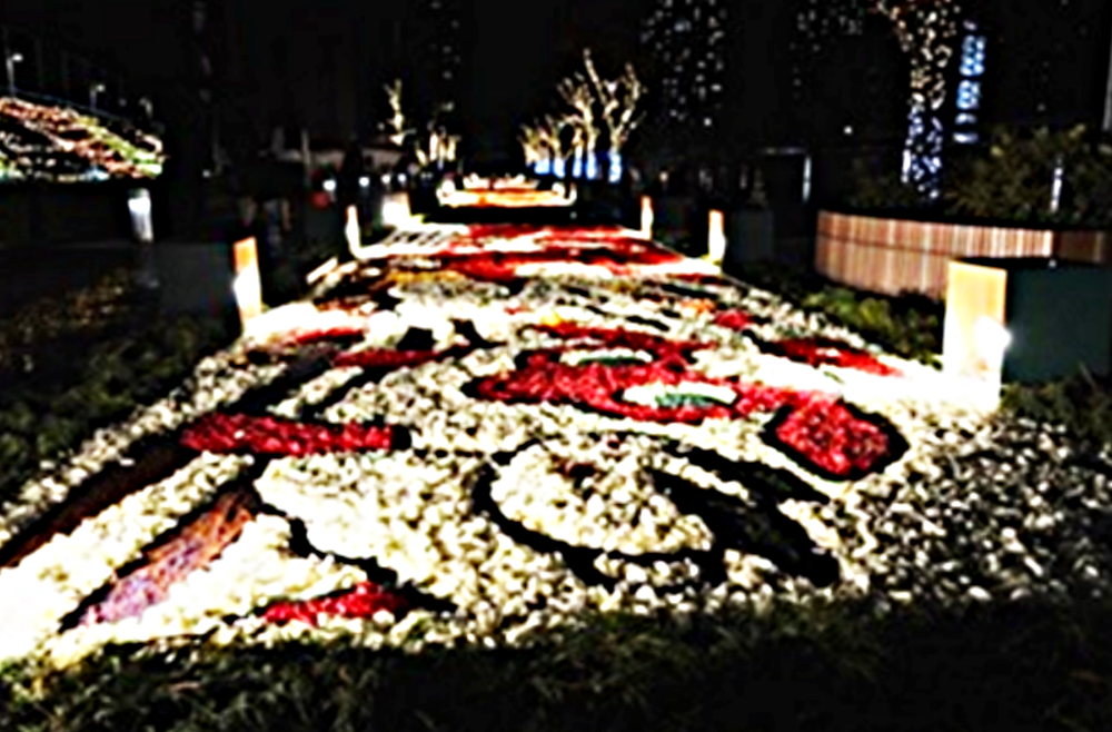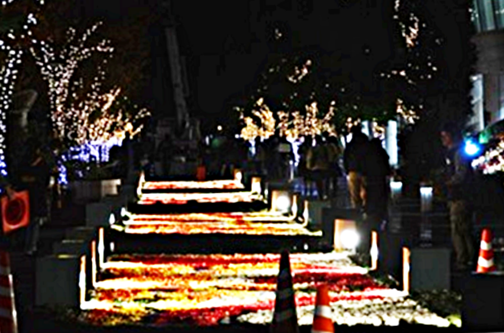 家の窓から外を見ていたら、トリトンスクエアでフラワーカーペットのイベントをやっているのが見えた。例年通りのイベントだが、いつもは昼間に見に行っている。
