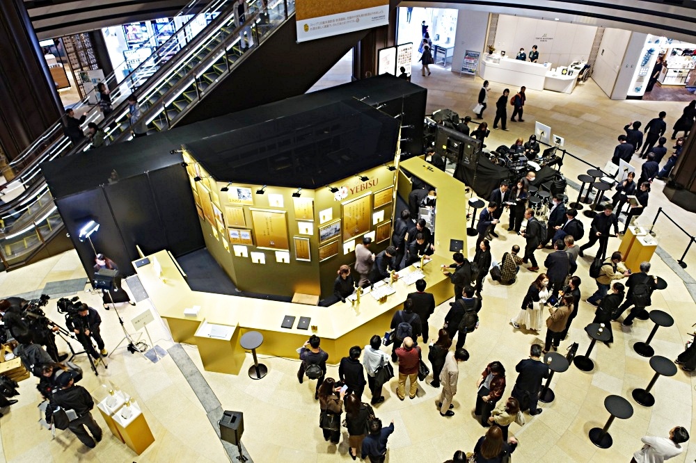 「エビスビール 黄金のBAR」というコーナーが作られていて、この日は報道陣向けのお披露目のようだった。看板を見たら、260ml のビールが500円で飲めるようだ。
