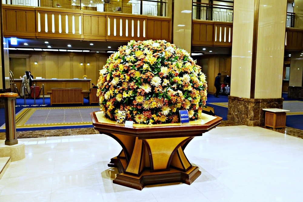 帝国ホテルのHPで調べたら、花は「アナスタシア」、「スプレーマム」、「アルストロメリア」、他と書いてあった。私はアナスタシア以外は知らない花だった。この花は10月1日から31日まで飾るようだ。11月はどんな花だろう?