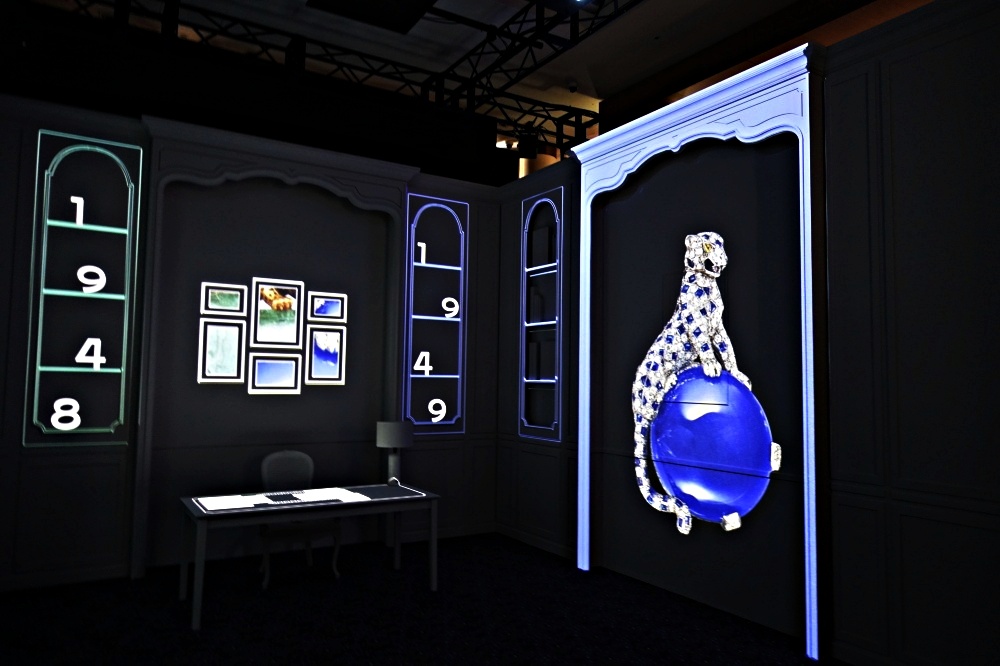 会場は1階から3階まであり、映像でカルチェの歴史と動画を見る。3階では宝石類の製品を見る。女性客ばかりで、私にはあまり興味の無い展示だった。