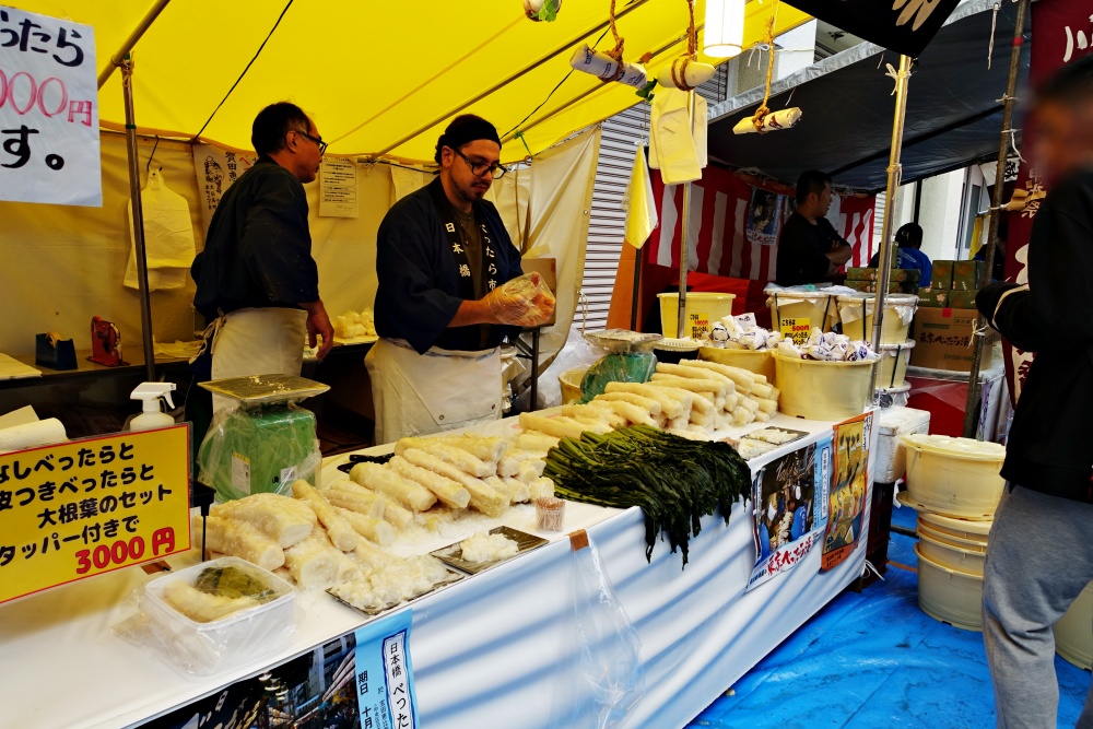 会場の日本橋本町はかなりの人出で、テント張りの仮店舗が細長い路地に200メートルくらい並んでいた。肝心の「べったら屋」はその内の7軒だけで、あとは屋台の食べ物屋だった。折角だから思い「べったら漬け」を買ったのだが、帰りの地下鉄で臭くて参った。