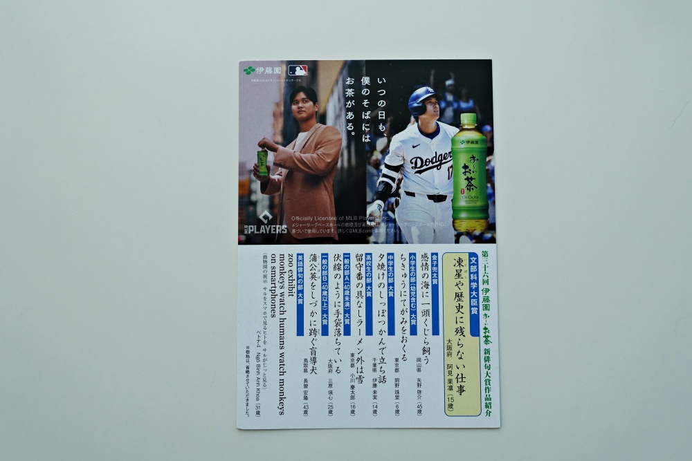 アメリカで大活躍の大谷翔平選手のスポンサーになっている伊藤園が、昨年の締め切りで「おーいお茶 新俳句大賞」の募集をしていたので、指定用紙に書いて応募しておいた。