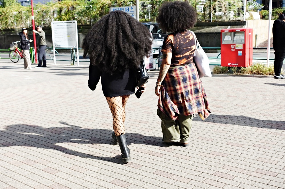 最初はなんだか分からなかったが、よく見たら巨大なヘアースタイルの2人の外国女性だった。