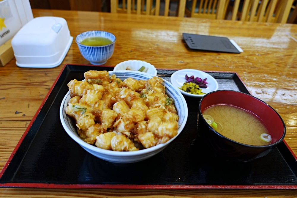 2階の席も満席近かった。私はいつもの「かき揚げ丼」を注文したら、1000円に値上がりしていた。