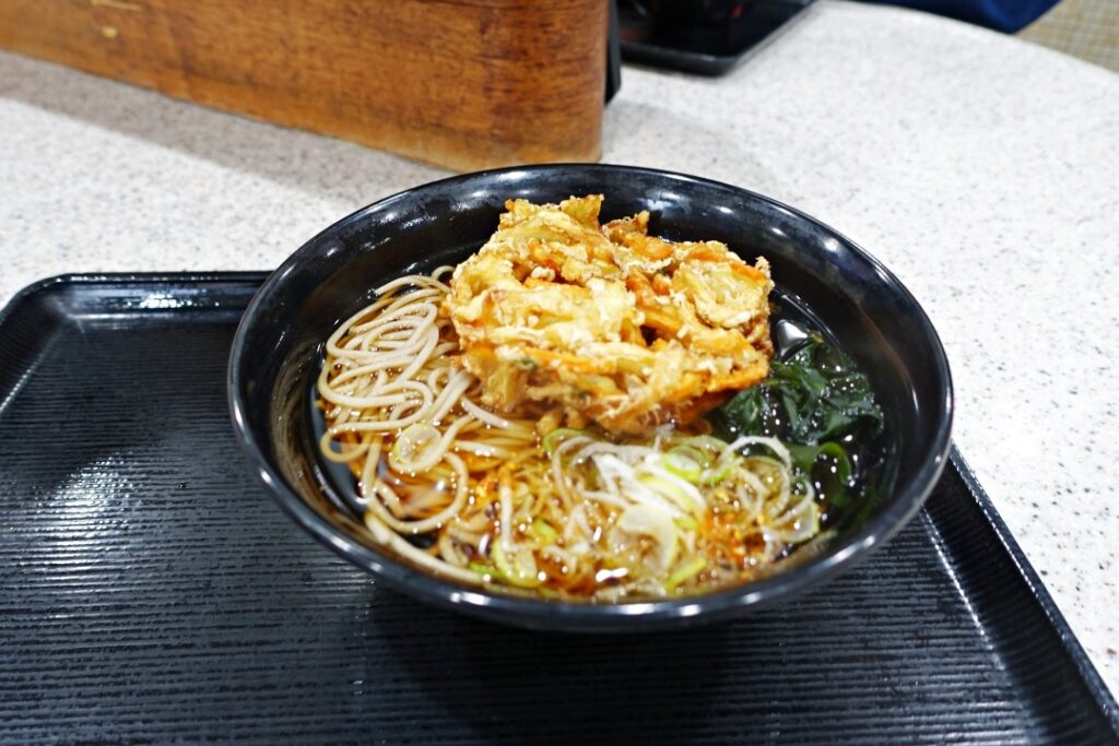 「天ぷらそば」を食べたが、まあまあの味だった。