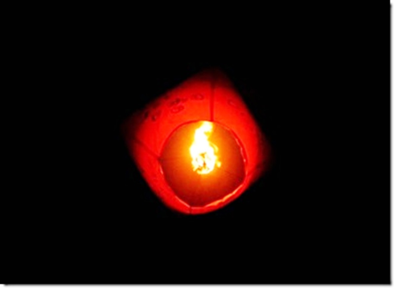 そして紙束に火を付けると、紙風船は勢い良く夜空に飛んで行く。
