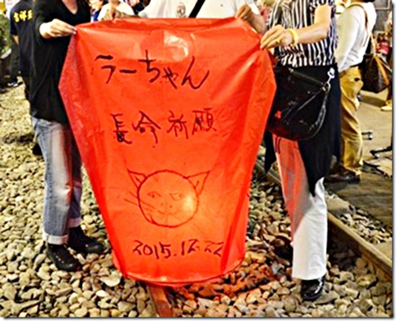 夜は郊外の村、十分老街に紙風船(熱気球)を上げに行った。