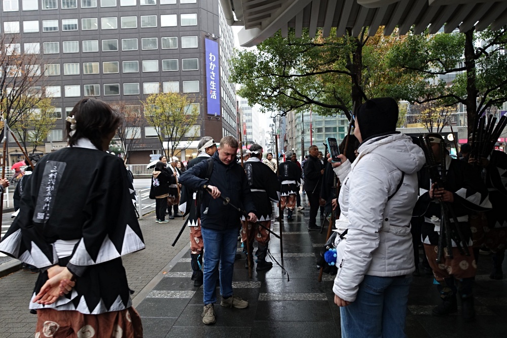 私は軽くランチを食べてから、もう一度歌舞伎座前に行ってみたら義士達が集合していた。しかし47人には何人か足りない感じだが、外国人が数名、参加していた。