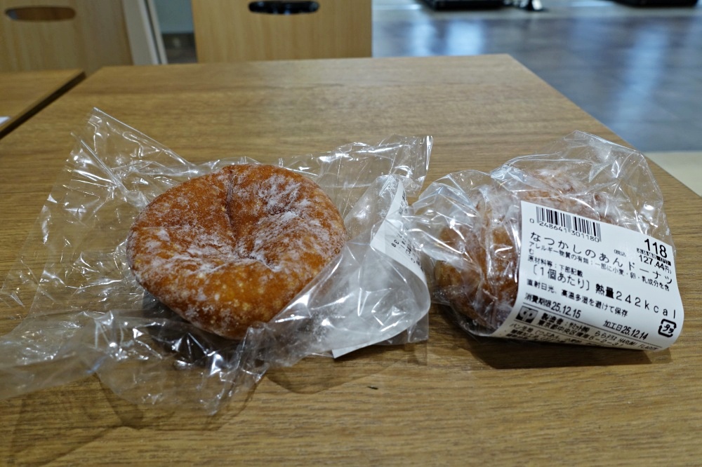 店の隣には休憩スペースがあり、スーパーで買った物を持ち込んで食べられるようになっている。油で揚げたアンパンであるから、いかにも体に悪そうな食べ物である。