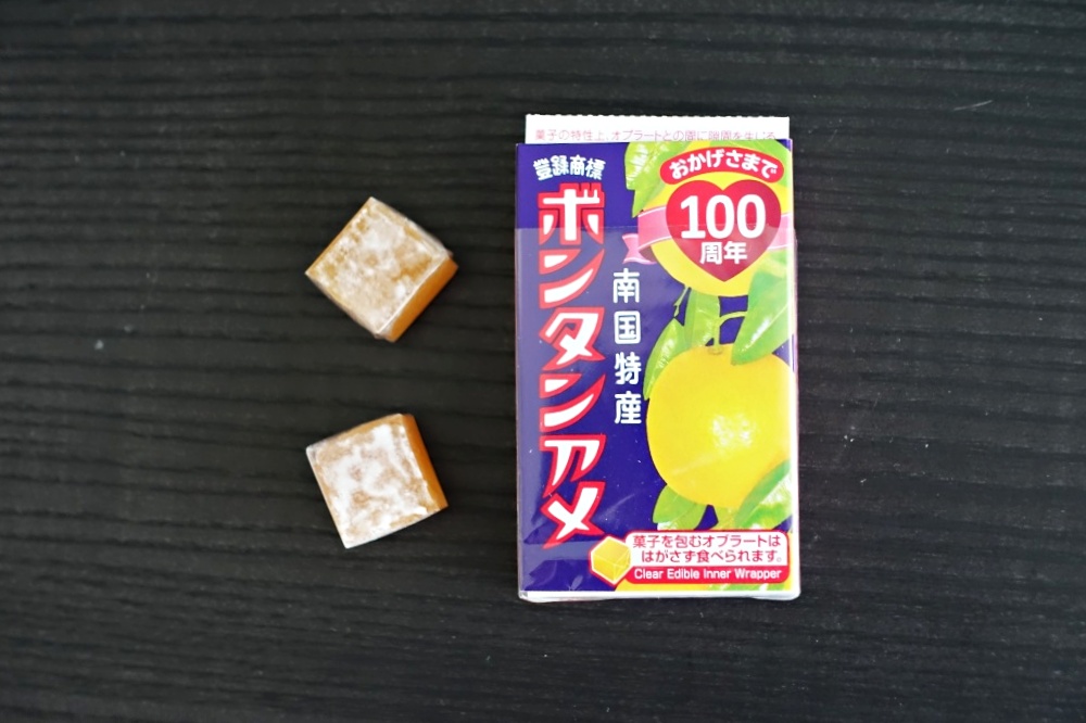 「ボンタンアメ」とは「鹿児島の飴菓子で、キャラメルに似ていてボンタンが添加されている」。