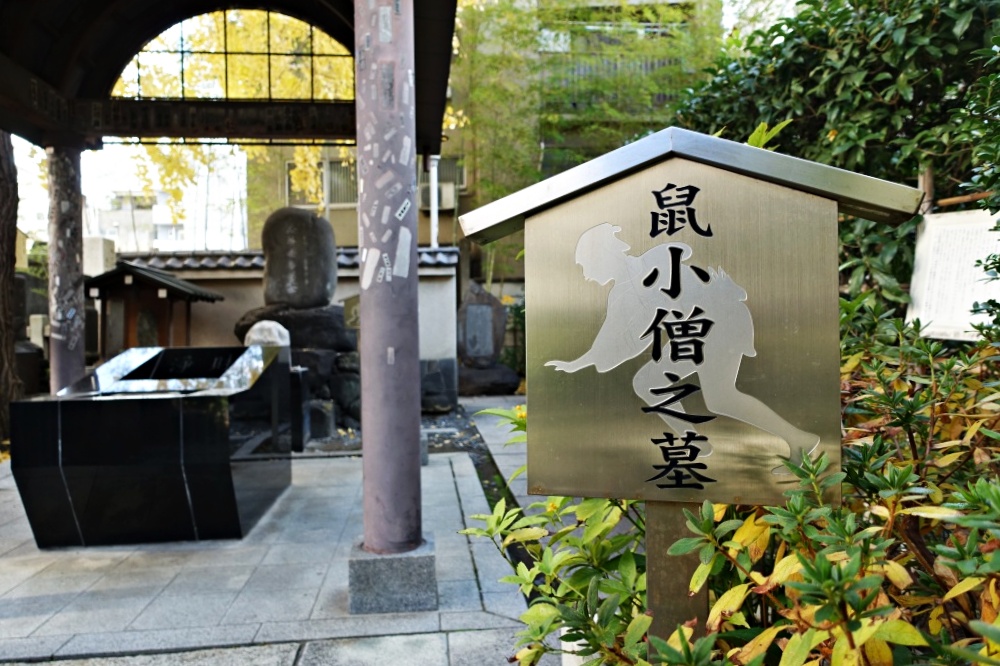 この寺には「ねずみ小僧次郎吉」の墓がある。本堂の前を通り過ぎ、裏の入口に近い場所に「ねずみ小僧」の墓はある。