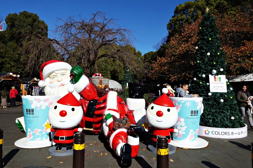 東京都美術館に行くのがこの日の目的なので、道路を渡って上野公園の入口に行った。そこには大量のサンタクロースの置物があった。