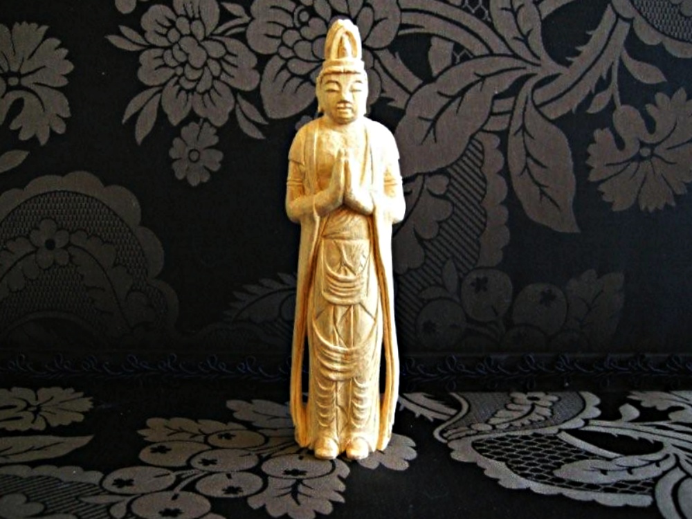 そこで以前に仏像教室で私が彫って保管してある「勢至菩薩像」を、箱から出して飾ることにした。