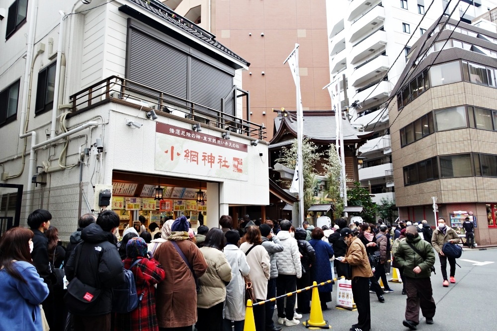 人形町から日本橋へ歩いて行くと、裏通りに「どうしたの?」というくらいの長い行列が出来ている。ここは「小綱神社」で、「東京銭洗い弁天」として人気がある。神社の前から行列は始まり、ワンブロックの一周を囲むように続いているから300メートル以上はある。