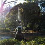 HPによると「新宿御苑で最も高い木は46mのモミジバスズカケノキ。 略して「スズカケ」。鈴のような実がなることから、そう呼ばれている。初期に植えられたとされ、新宿御苑の中で最も古い歴史がある』。